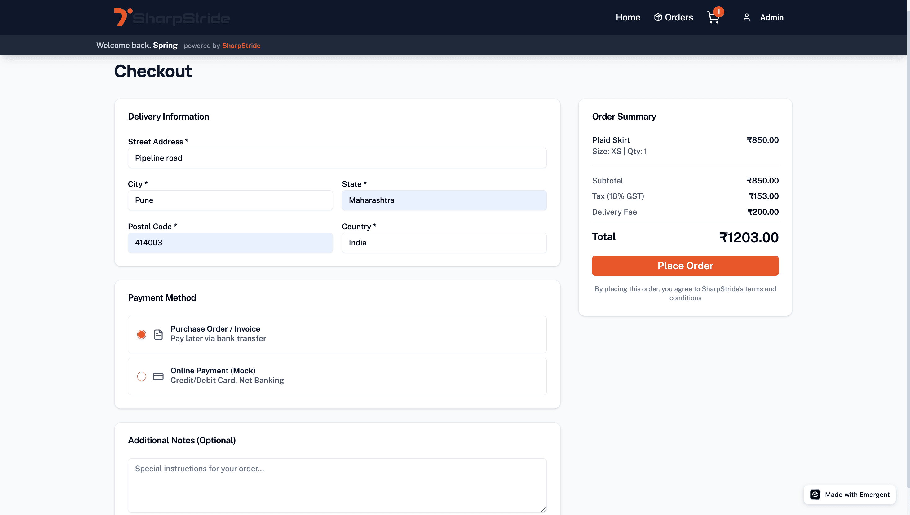 6. Adds Checkout details